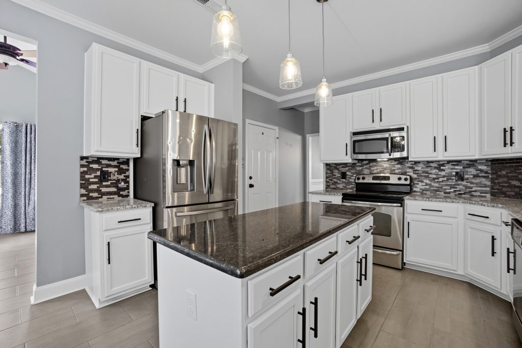 Welcome to your beautifully updated home in Bayberry Cove. As you enter this spacious home, you are greeted by an open foyer that showcases the updated staircase and extensive trim. The living space includes a custom fireplace that can be used with or without heat. The backyard has a secluded feel with the wooded backdrop. The kitchen features refaced cabinets and new granite. Kitchen also has gas line if you prefer to change the stove unit in the future. You will enjoy the sunroom with all the natural light. Primary bedroom includes dual closets. Updated bathrooms. The many updates throughout the home are just what you have been looking for. 2024 gas heat, A/C and water heater. 2020 leaf filter gutters, 2021 overhead garage door. Lots of new flooring, updated lighting and so much more. It is close to all the surrounding excitement but tucked away in a quiet little neighborhood. See it today!